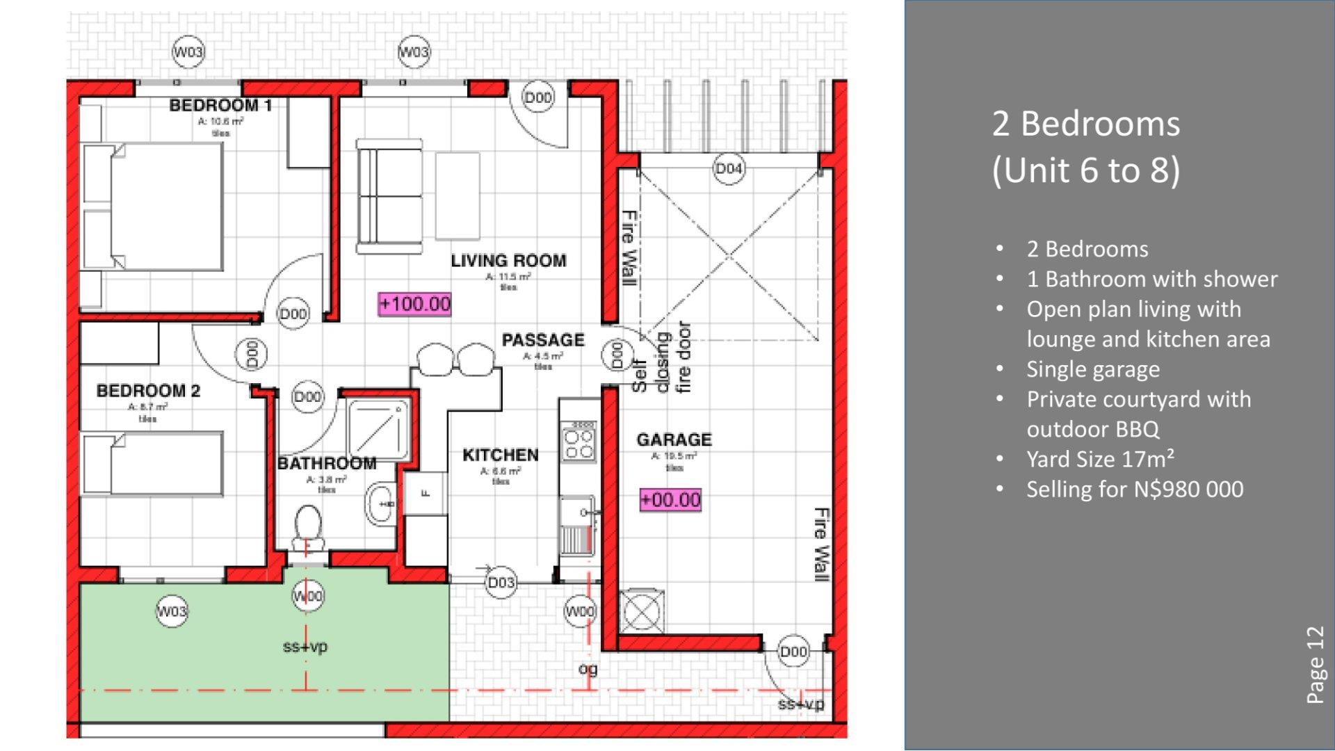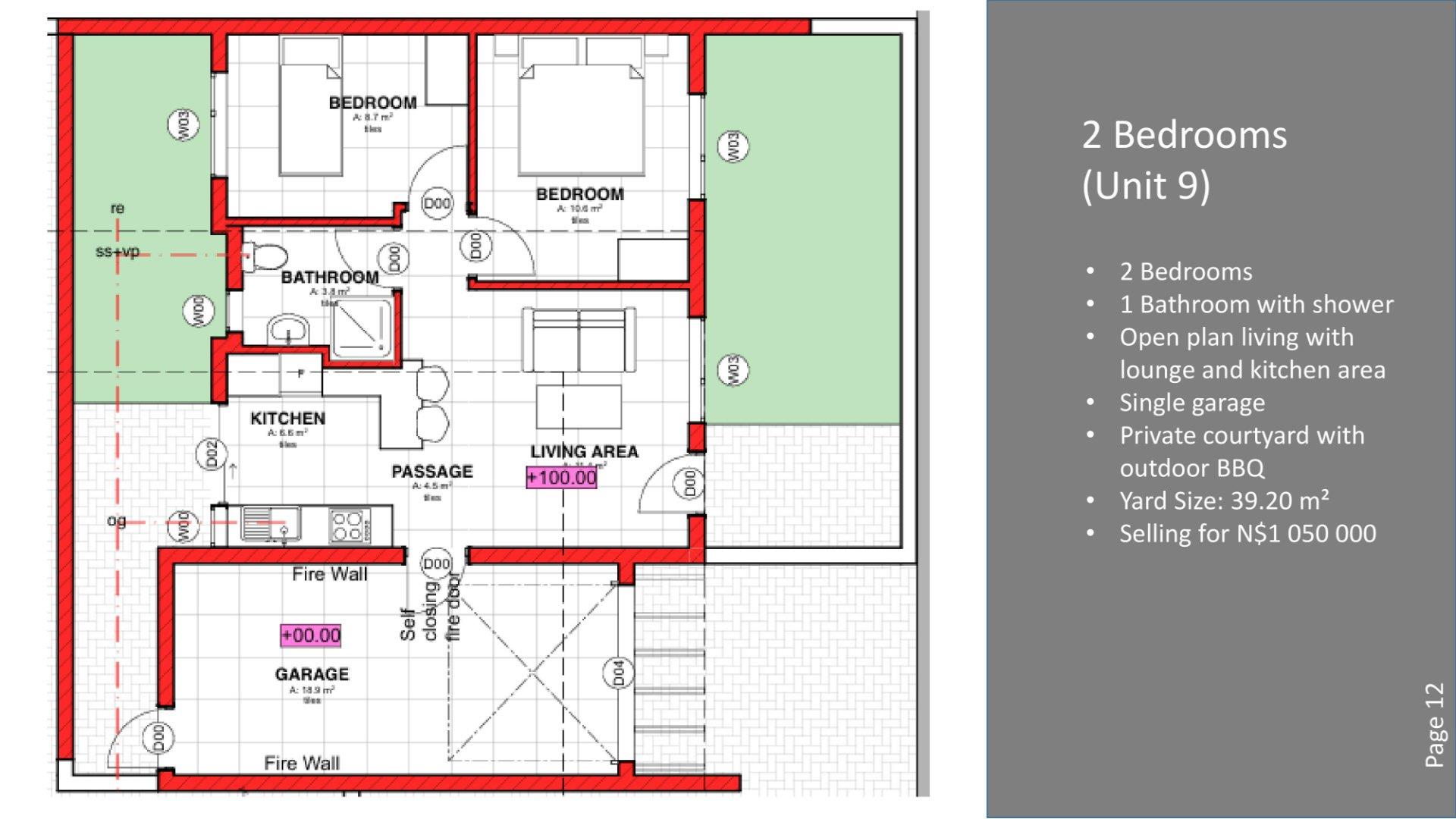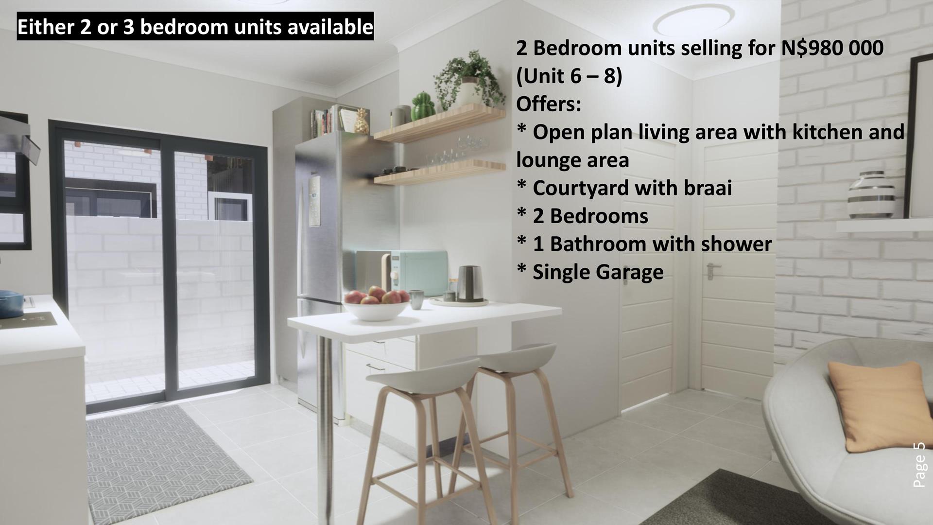 2)Unit 9 (direct street access): PRICE N$1,050,000.